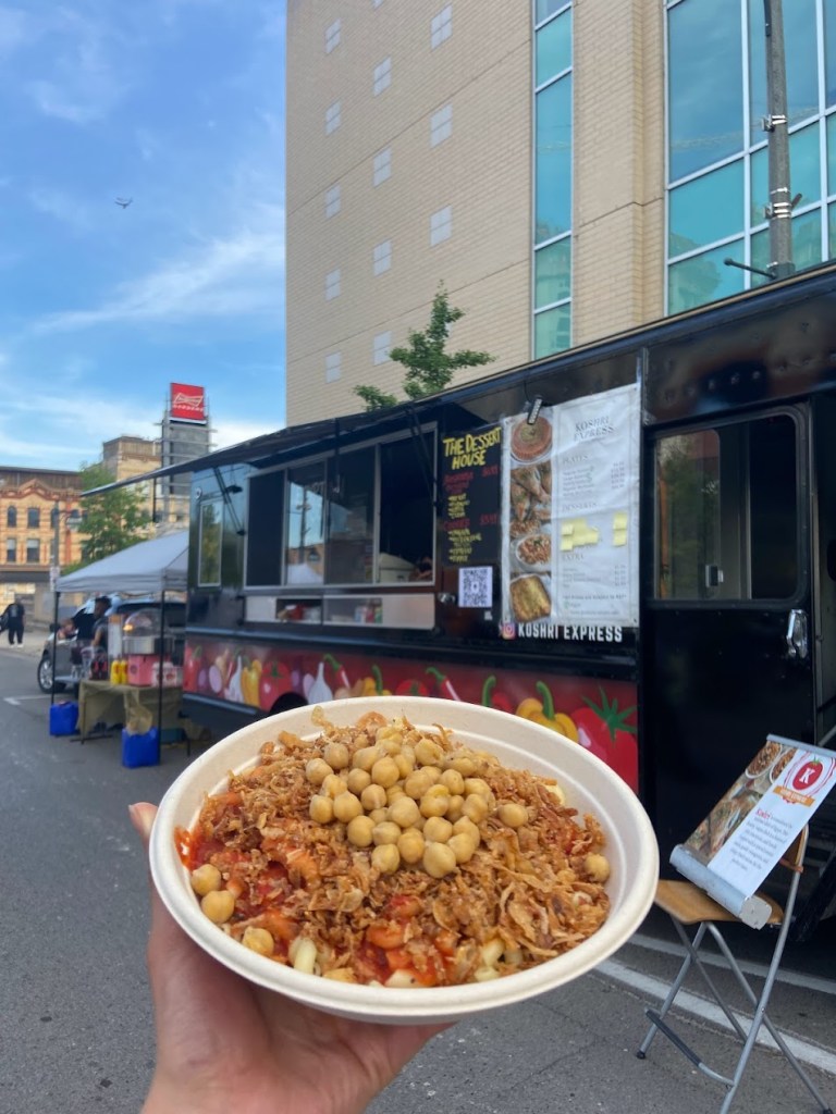 Koshri Express brings fresh, authentic koshari to events, festivals, and private gatherings, along with a variety of other delicious Egyptian dishes. We’ve created a unique hybrid experience that allows us to come to you, or you can come to us. No matter where you are, koshari is just a bite away!